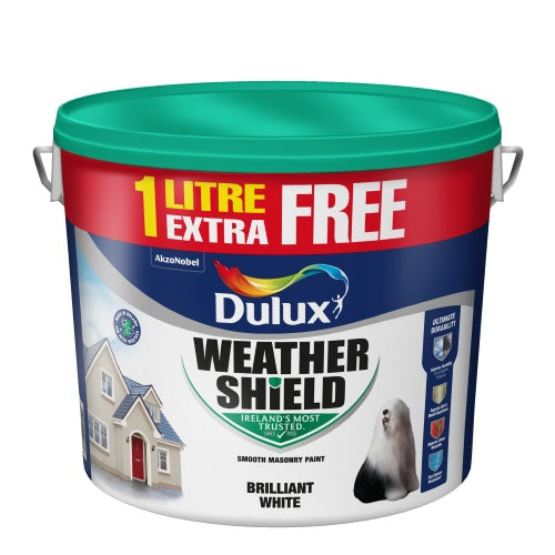 DULUX WEATHERSHIELD SMOOTH MASONRY WHITE - 10L+1L FREE