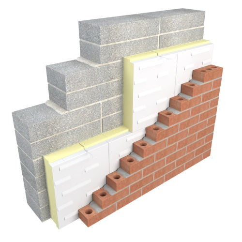 CavityTherm wall insulation board is a high performance composite board of enhanced PIR core with a lambda value of 0.021 W/mK. The boards have gas tight facings with one face bonded to a profiled HIPS skin during manufacture to provide a drainage plane.