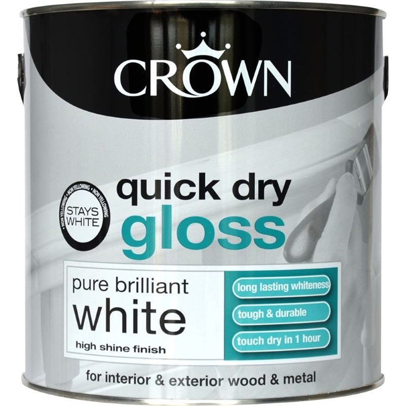 Crown Quick Dry Gloss is ideal for use on interior and exterior wood and metal. It covers blemishes in one coat and dries within an hour. The gloss is easy to use with a non-drip formulation, and provides a long lasting finish with a high shine.