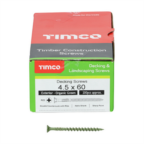 The TIMCO Decking Screw PZ2 - Green 4.5 x 60mm is the perfect choice for any outdoor decking project. This screw is made from high-grade steel and is designed to provide superior strength and durability. The green coating provides a corrosion-resistant finish, making it ideal for use in exposed outdoor environments. The PZ2 drive type ensures easy installation and the 4.5 x 60mm size is perfect for most decking applications. With its superior strength and corrosion-resistant finish, the TIMCO Decking Screw PZ2 - Green 4.5 x 60mm is the perfect choice for any outdoor decking project.